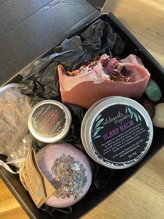 Pamper yourself or someone special with this lovingly handcrafted care package. Inside you’ll find three artisan soaps, a rejuvenating face clay mask, and a deeply nourishing hand balm — all created to soften, soothe, and restore.